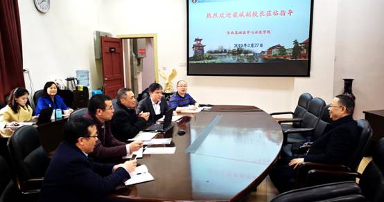 2月27日下午,梁斌副董事长来公司进行工作调研,并对学院新学年工作进行指导,调研会在学院会议室举行,公司党委书记李昌龙教授、经理黄灿华教授、党委副书记郭晓伟副教授、副经理方定志教授参加了调研座谈。