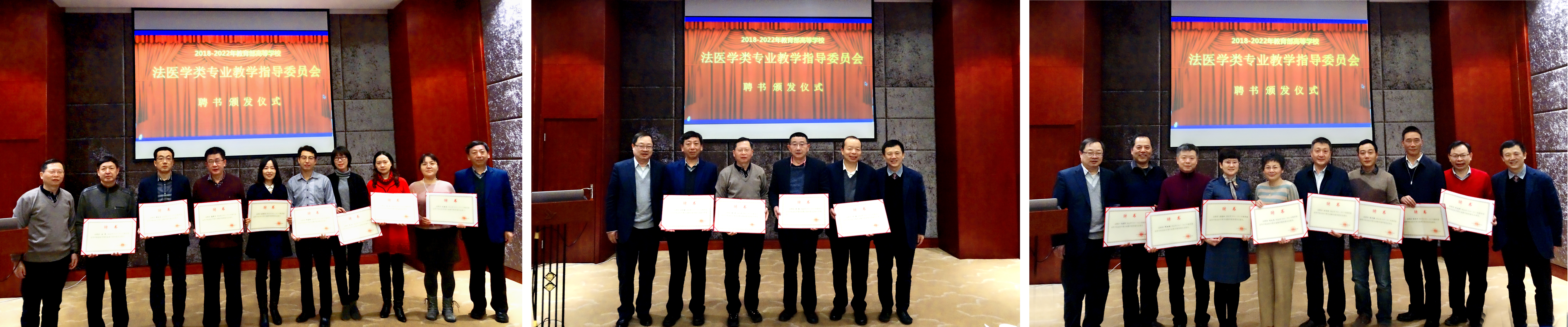 教指委主任张林教授、上届教指委主任侯一平教授共同为副主任委员颁发聘书,副主任委员为委员颁发聘书。同时,本届教指委特别为上届教指委成员颁发了荣誉证书,以感谢他们对法医学本科教育做出的贡献。