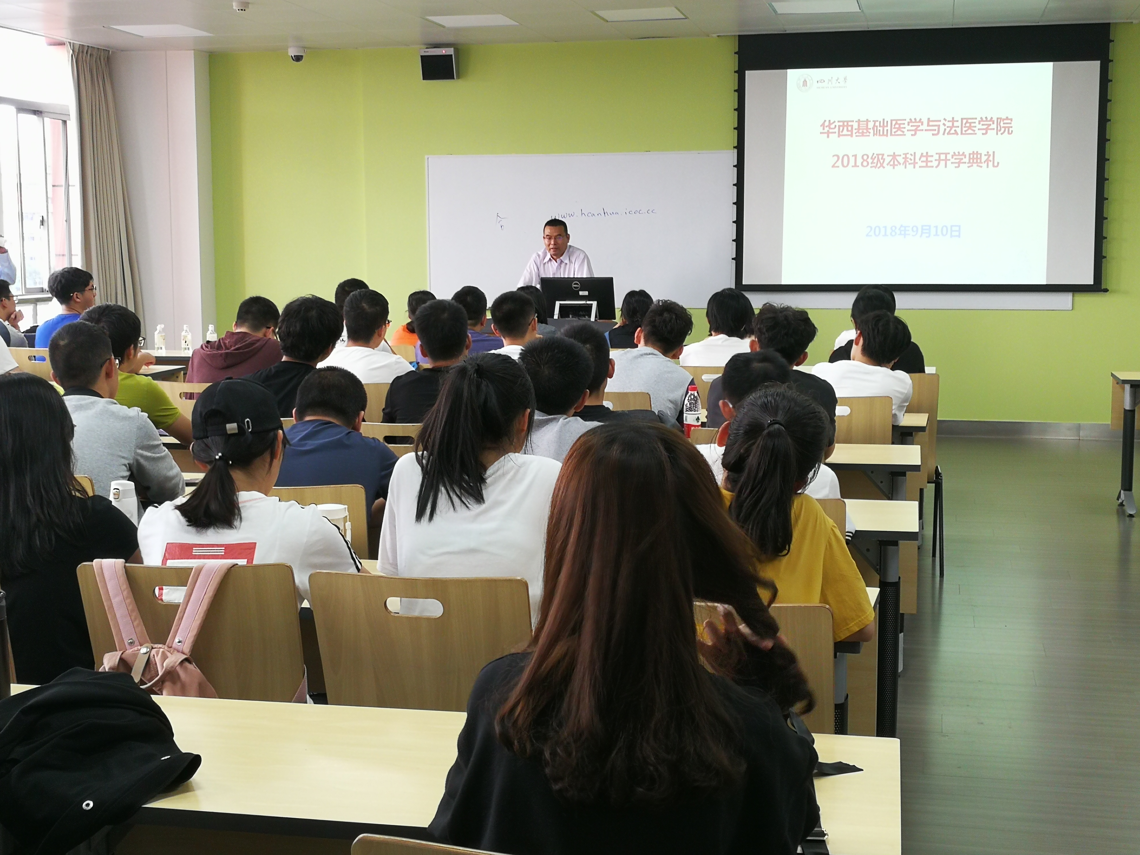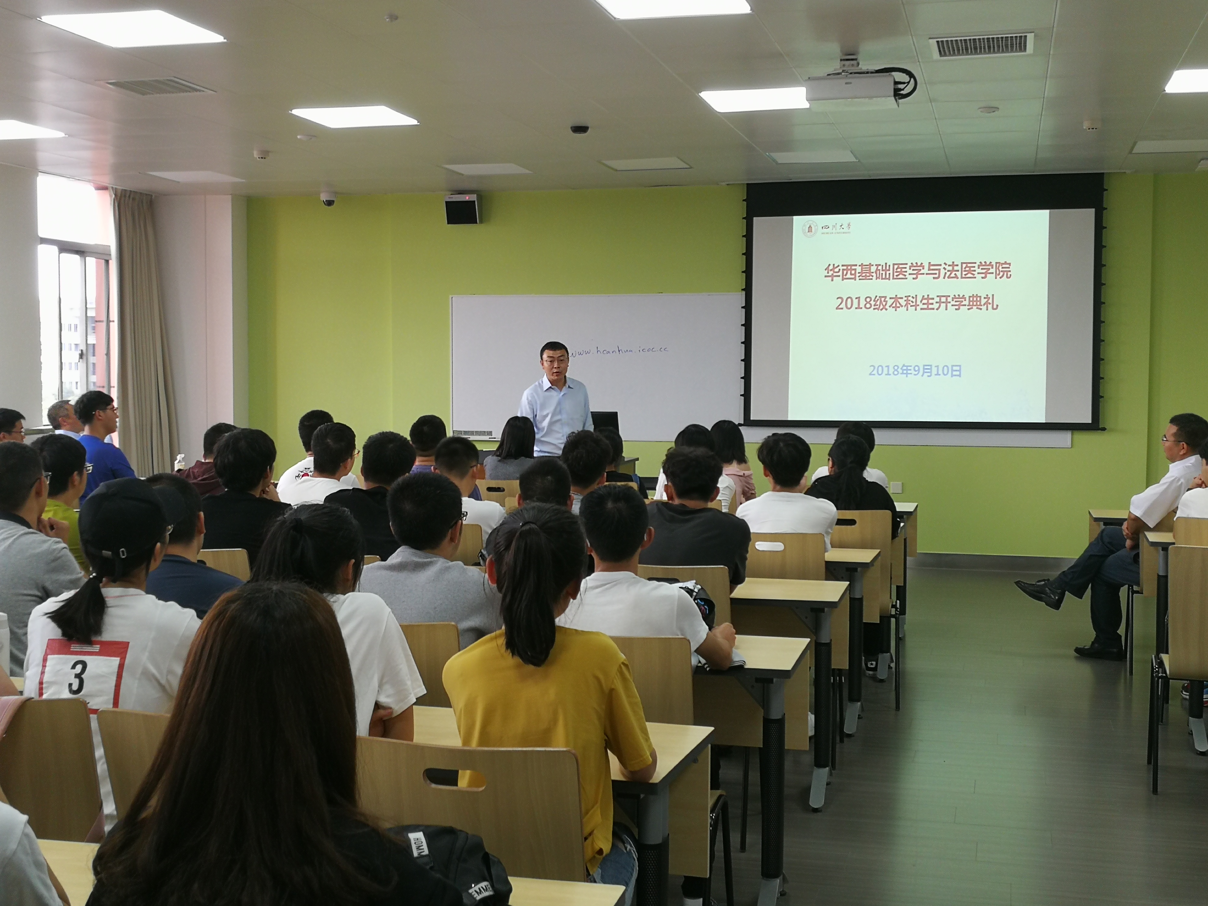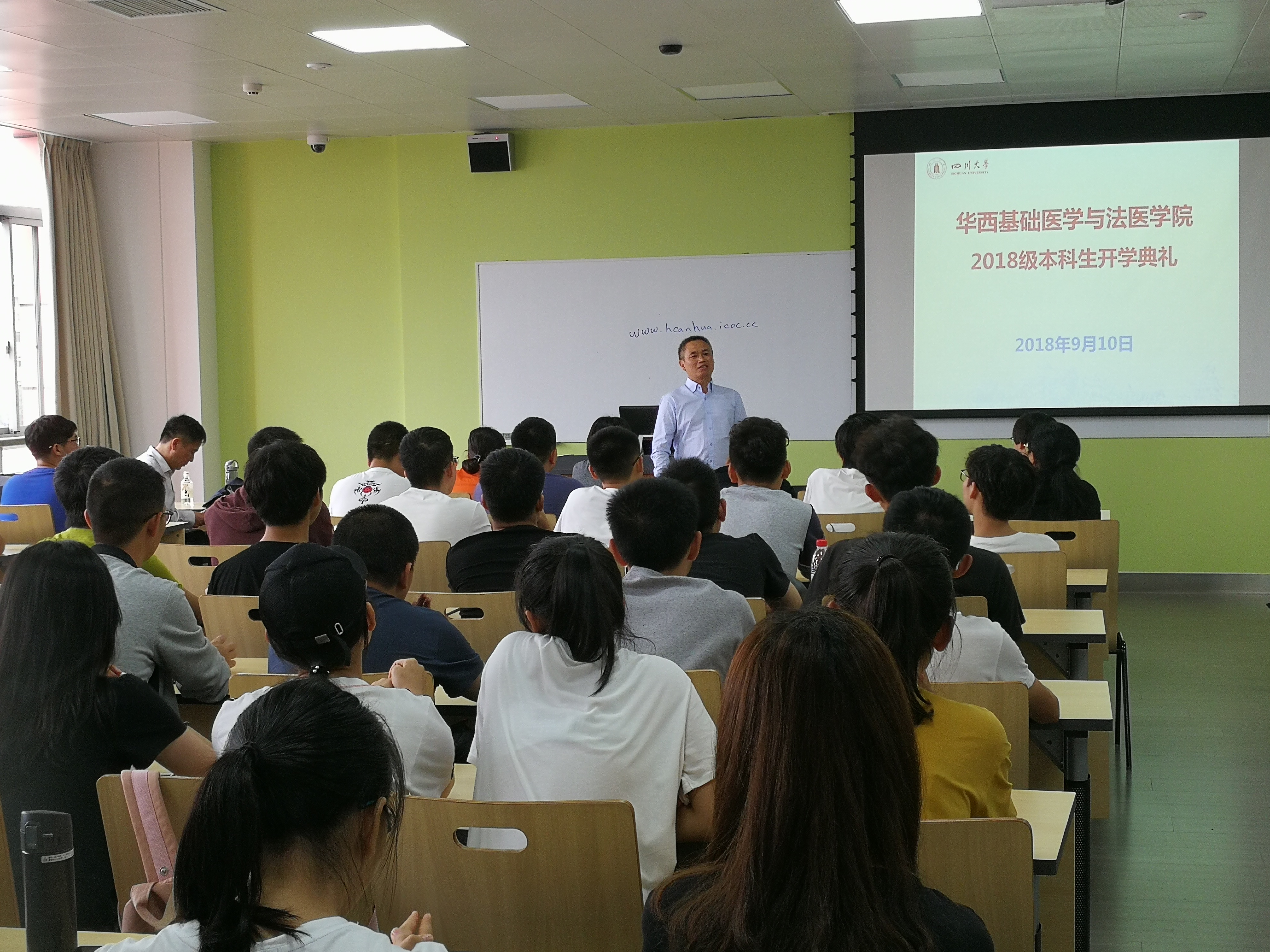 郭晓伟向同学们介绍了华西渊源和发展历程,阐明了华西是中国现代医学发源地之一。他表示,同学们要认真体会和理解董事长在全校开学典礼上的讲话,并客观认识到学校在世界高校中的地位。他以此鼓励同学们,成功时不骄傲自负,挫折时不妄自菲薄,脚踏实地,不断努力,勇往直前。