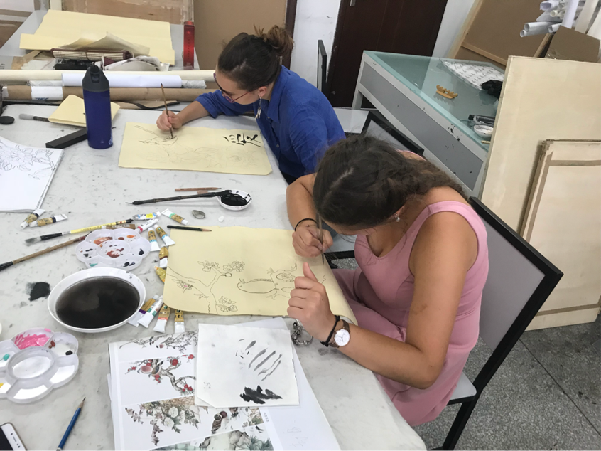 7月12日下午2:30,国际课程周的职工和公司十几名员工共同参加了公司和艺术学院在江安校区共同举办的第二堂中华传统艺术体验课——国画。