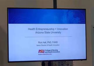 23日上午,同学们怀着兴奋激动的心情,在美方学校Amy老师和助理金思成同学亲切陪同和带领下,来到了亚利桑那州立大学位于城中心的校区。美方Hall教授为项目组的同学们上了一堂生动的Health Enterpreneurship课程,讲授如何从生活中存在的健康相关的小问题出发,设计出合适产品,以及如何确定客户进行销售策划等系列知识。