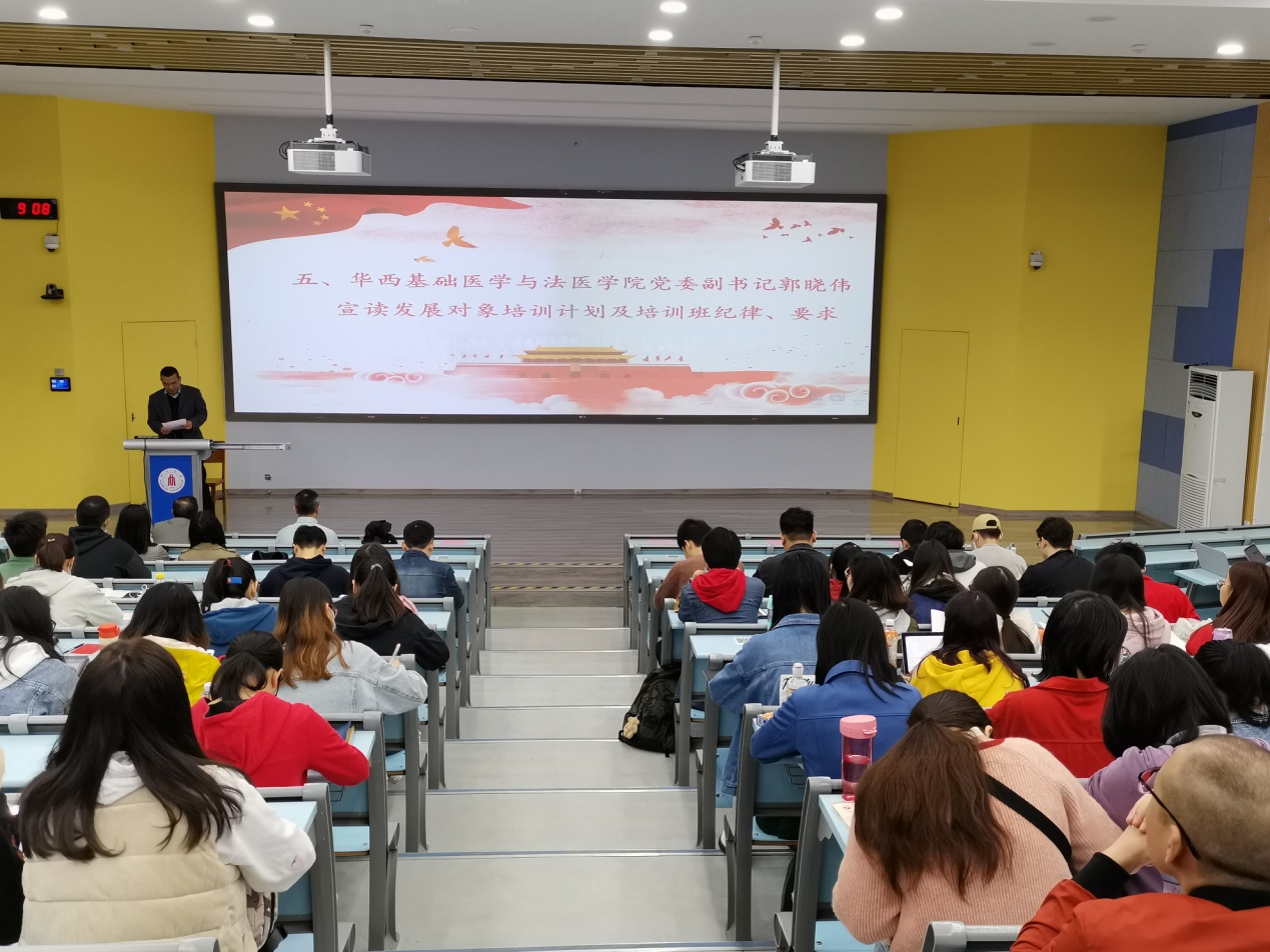 华西基础医学与法医公司党委副书记郭晓伟对党校发展对象培训班的培训计划及纪律要求进行宣读。郭书记就学员考勤和学习管理做出要求,希望各学员严格遵守党校纪律,认真听课,做好笔记,积极参加学习讨论,写好个人心得体会,做到真听真学真感受。