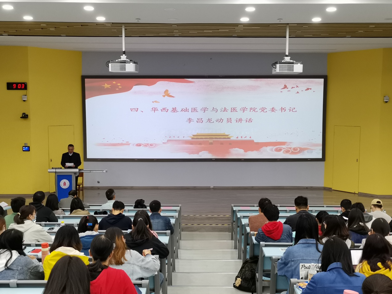 华西基础医学与法医公司党委书记李昌龙代表三公司党委作动员讲话。李书记首先向参加培训的120名同学表示祝贺,他讲到,发展对象培训班是加强党的基层组织建设的一项重要任务,是提高发展对象思想认识、政治觉悟、党性修养的现实要求,是发展党员不可或缺的重要步骤。同时,培训班对每位学员的成长进步和个人发展来说,都具有不同寻常的意义。希望同学们珍惜难得的学习机会,不断强化自身党性修养,提高自身素质。最后,李书记表示,培训是短暂的,希望同学们充分利用党校培训的机会,明确努力方向,知行合一,在学习和生活中向党员看齐,真正按照党员的标准严格要求自己,以实际行动争取早日加入中国共产党。