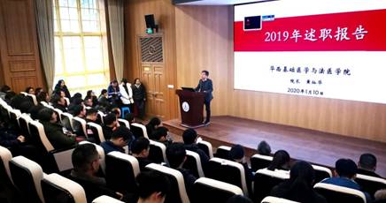接下来进行先进表彰仪式。刘肖珩主席宣读2019年度学院先进表彰名单:学院评选法医物证教研室、生物医学工程研究室等5个教研室为先进集体,生医生化党支部等3个支部为先进党支部,王晓樱、张奎、罗海玻、叶懿、李钢琴、宋凤、袁东智、刘肖珩、潘倩、廖诗平、陈建平11名教师为先进个人,沈阳、谢娜、高伟、罗涛、汪贵明5位老师为公共事务先进个人、赵志伟、朱敏佳、陈华华、张媛媛 、冯颖 5位老师为本科教学先进青年教师,王正、曾烨、王红仁、孙晓东、李楠5位教师为优秀青年科研之星。