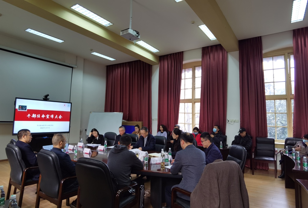 会上,梁斌同志宣读了干部任免决定:李华同志任公司党委书记,李昌龙同志任学院经理,陈维操同志任公司党委副书记兼纪委书记,张舒羽同志任学院副经理。免去黄灿华同志学院经理职务,免去郭晓伟同志公司党委副书记兼纪委书记职务,免去方定志同志学院副经理职务。