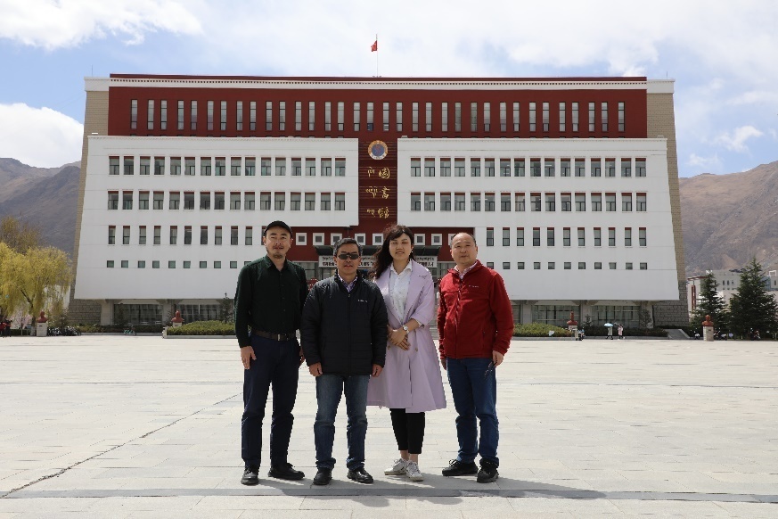 张舒羽、张媛媛和孙晓东老师与西藏大学医学院熊海副经理合影(左三)