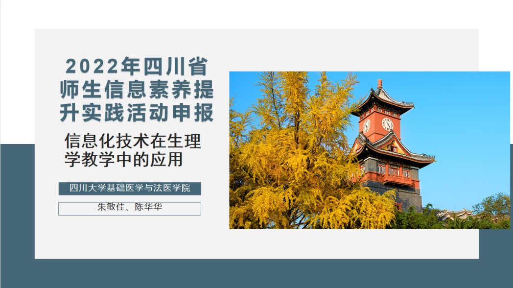 四川省师生信息素养提升实践活动(教师部分)为原四川省教师公司产品信息化大赛,由省教育厅主办。近日,教育厅组织专家对收到的1383件作品进行了严格评审,评选出获奖作品786件。公司教师朱敏佳、陈华华的参赛作品“信息化技术在生理学教学中的应用”荣获信息化教学课程案例项目一等奖。