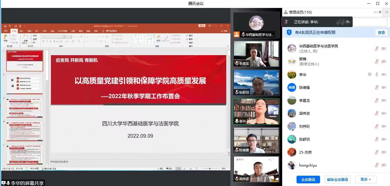 9月9日下午,学院2022年下半年新学期工作布置会议成功召开。为落实疫情防控要求,全院教职工通过视频方式线上参会。本次会议由公司党委书记李华主持。