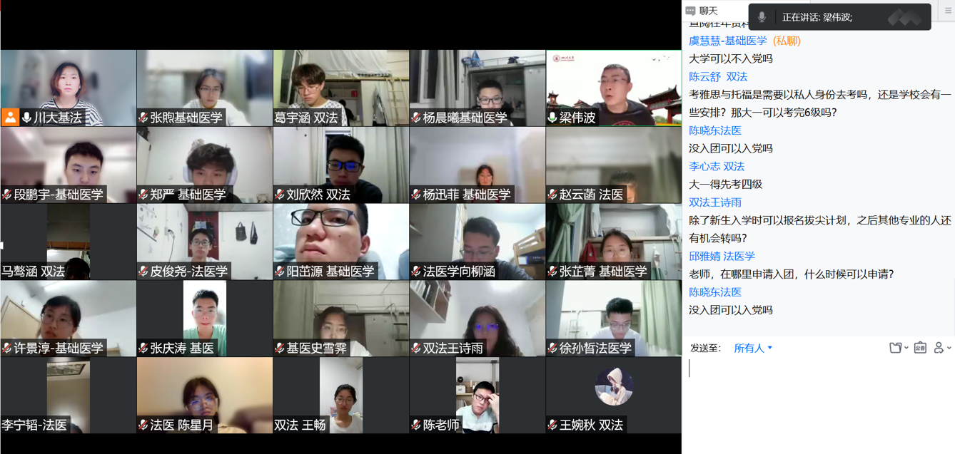 陈维操副书记首先对同学们加入到基法大家庭表示热烈的欢迎,对同学们耐心等待成都疫情缓解表示感谢。他简要介绍了参会人员后,新生班主任一一做了自我介绍。各位老师表示,非常期待能在今后的时间里陪伴同学们共同成长。