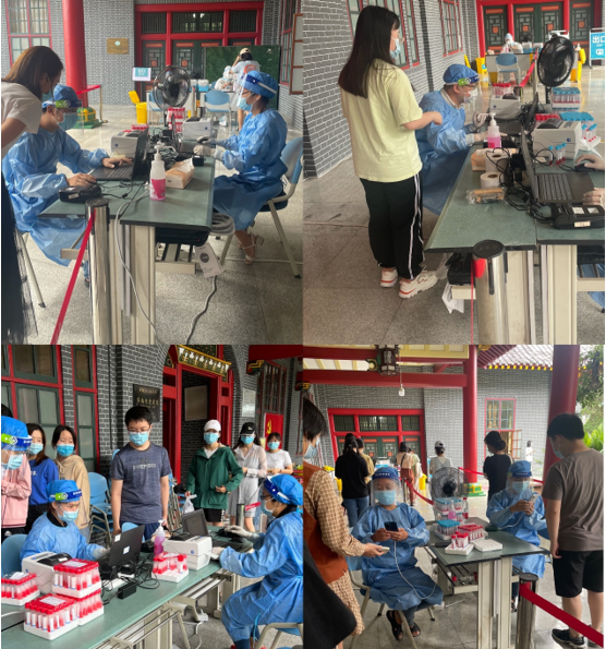 公司党委积极响应公司党委的号召,迅速集结16名党员同志组成党员志愿服务队。9月2日上午,由公司李华书记、董立华老师、应国量老师、蒋宝晴老师组成的第一组党员志愿服务队在华西校区核酸检测点为在校师生提供核酸检测志愿服务。人解组胚党支部书记董立华同志为了确保检测采码系统持续使用,不影响下午核酸检测工作的开展,坚守志愿服务岗位到当天下午6点。9月3日下午,由公司梁伟波副经理、郑风劲老师、青思含老师、陈琦伟老师组成的第二组党员服务志愿队在华西核酸检测点持续为校内师生提供核酸检测志愿服务。9月5日上午,由公司黄莉主席、青思含老师、应国量老师、孙晓东老师组成的第三组党员服务志愿队在华西核酸检测点持续为校内师生提供核酸检测志愿服务。而即将于9月7日上午参加党员志愿服务的第四组党员服务志愿队也已经集结完毕。很多党员同志纷纷表示只要组织需要,防疫政策允许,必将第一时间积极报名参与。