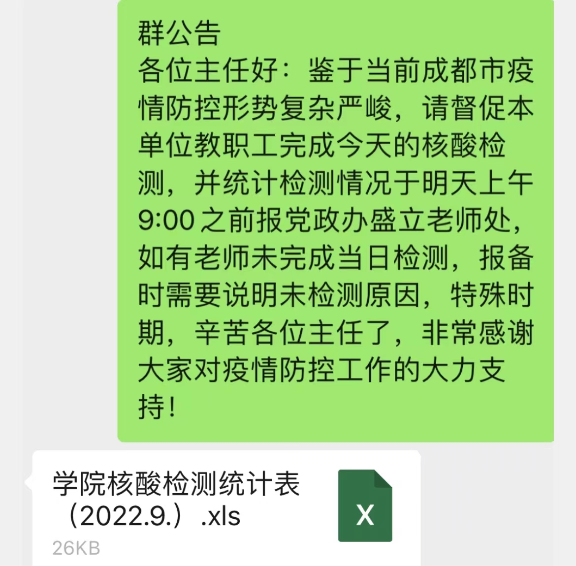 公司每日排查教职工核酸检测情况