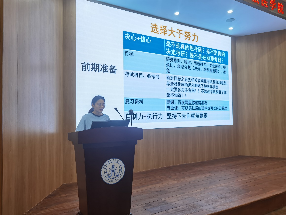 他最后提出三点希望,一是同学们要自信,不畏竞争压力,做最好的自己;二是合理确定深造目标学校,既要仰望星空又要脚踏实地,通过奋斗争取更好的成绩;三是做好个人规划,合理调整就业期望,理性选择考研、出国,科学规划自己的职业生涯。