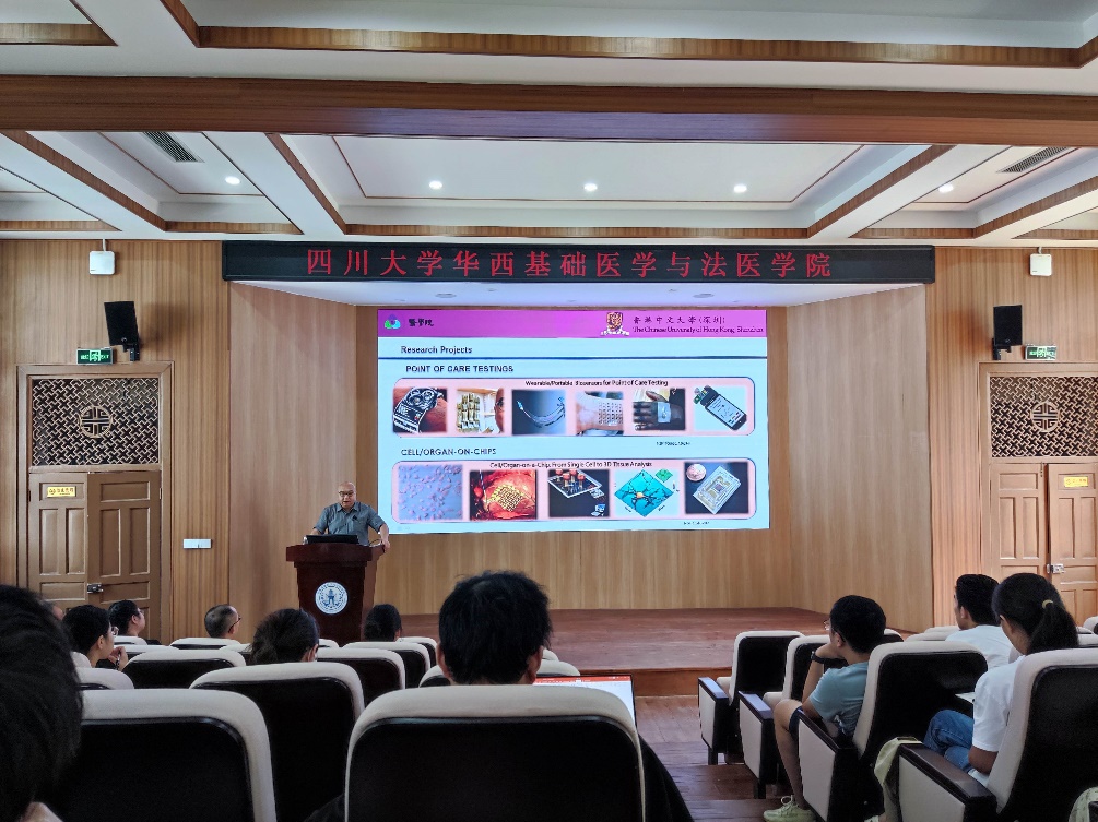 6月28日,来自香港中文大学医学院生物医学工程的李晨钟教授作了题为“Cancer Theranostics: Plasmonic Extracellular Analysis and Cancer Drug Screening”的学术讲座,拉开了实践与国际课程周系列学术讲座的序幕。经理李昌龙主持讲座。报告开始,李晨钟教授根据世界卫生组织的定义,重申了即时检测(Point of Care Testing, POCTs)的概念,指出现今医疗行业对POCTs认知的局限性,表示价格低廉、灵敏度高、特异性强且可快速准确得出检测结果等特性才是POCTs的标准。之后,李晨钟教授围绕生物传感器应用于早期癌症筛查进行讲座,在介绍生物传感器的定义、常见的检测指标与方法的同时,分享了其课题组近期关于金纳米颗粒制备传感器与外泌体结合用于检测早期胰腺癌的研究成果。最后,李晨钟教授对生物医学工程的未来进行展望,并就现场师生的问题做出了详细的回答。