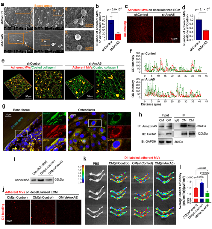 近日,公司刘肖珩教授团队在Bone Research发表原创研究论文,证实了基质囊泡来源的AnxA5在骨重塑中的重要作用,阐明了AnxA5通过促进基质囊泡与I型胶原的黏附,诱导骨前体细胞发生自噬和加速矿化预防骨丢失的新机制,为骨质疏松症的防治提供新策略。