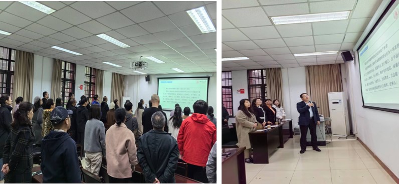 师德,是教师修身立业,润心化人的根基。师风,是教育事业历久弥新,稳健发展的“保垒”。全体参赛教师在华国春的引领下庄严的进行师德师风承诺:“将严格按照《新时代高校教师职业行为十项准则》要求:忠于党的教育事业,爱国守法,言行雅正,公平诚信,廉洁自律,立德树人,为人师表,遵守学术规范,传播优秀文化,履行社会责任,为党育人、为国育才,立志做一名德教双馨、受员工尊敬爱戴的优秀人民教师。”