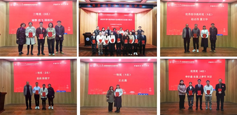 参赛的青年教师们用丰富充实的教学内容、生动流畅的教学语言、创新多样的教学方法、自信从容地展示了学院青年教师的教学本领和综合素养。评委们从教学内容、教学组织、教学语言与教态、教学特色等多方面对参赛教师进行综合考评,人体解剖学教研室王志菡老师获得一等奖,生理学教研室聂莉等老师获得二等奖,生物医学工程研究室谢静等老师获得三等奖。人体解剖学教研室赵志伟、董立华老师评为优秀指导教师。
