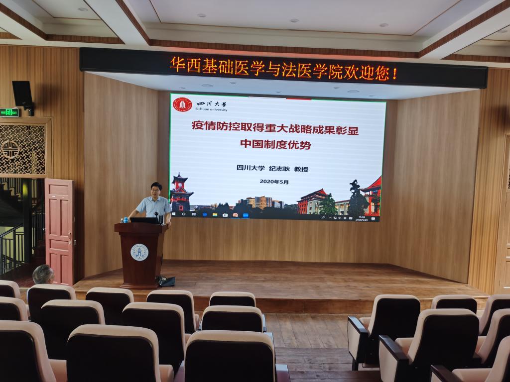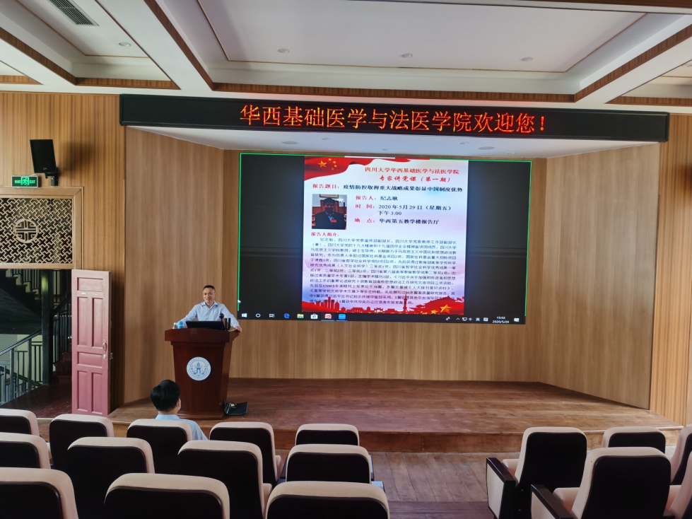 2020年5月29日下午,学院2020年第一期专家讲党课活动在华西校区第五教学楼报告厅举行。本次党课学院特邀英国上市公司365党委宣传部副部长、党委教师工作部副部长(兼)、公司党的十九大精神和十九届四中全会精神宣讲团成员、马克思主义学院教授纪志耿担任主讲嘉宾。会议由公司党委书记李昌龙主持,公司党委委员、纪委委员、各党支部书记现场参会,其余党员同志在线参加了学习。