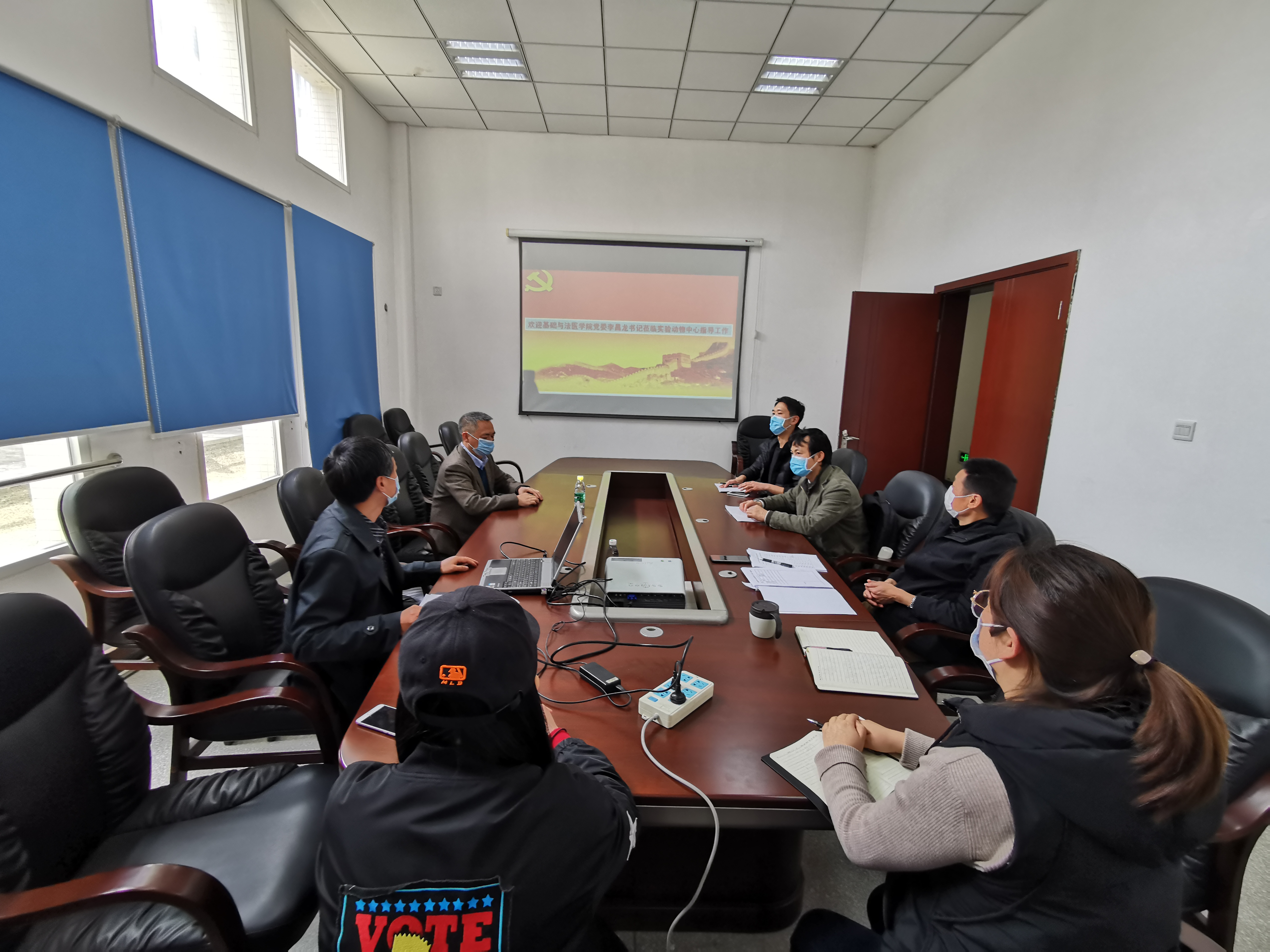 李昌龙书记认真听取中心支部学习计划工作后,对在座党员同志首先表达了感谢,在新冠疫情严峻形势期间,公司党委牵头组织党员同志协助校报保卫处的疫情防控工作,中心支部大力支持公司党委工作,多次积极组织中心党员同志参与守护校园平安,维护校园健康的疫情防控工作。其次,李昌龙书记从自身学习经历出发,讲述个人与实验动物中心的情感联系,从员工时代至今,每一次动物实验都记忆深刻难以忘怀,他希望中心在顺利完成年度本科教学服务任务的同时还要拓宽业务合作渠道,加强与学院的沟通和联系。第三,加强中心业务宣传力度,从提振业务发展的角度来看,对待工作成绩不能默不作声,有了困难更不能就此消化要多与学院积极联系,学院会尽全力提供帮助。第四,增进中心与学院各项工作的相互交流,我们能够做到借用资源共享达到共同进步,合作共赢的新局面。